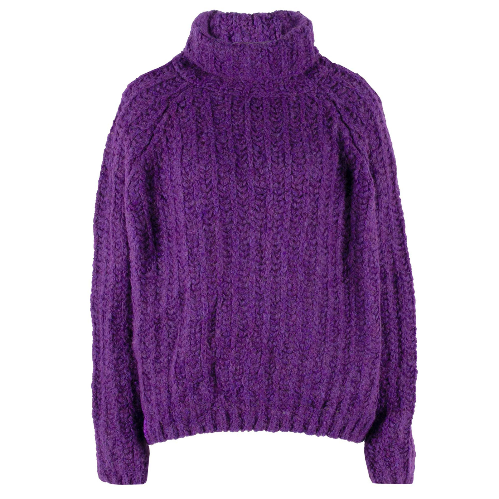 Passform: Weiter Oversize Sitz / Zum Vergleich: Die Puppe mit Größe S trägt hier den Pullover in Größe XS. Material: 40% Polyacryl, 35% Alpaka, 13% Wolle, 12% Polyamid. 1023-1040 Dark Lilac. Maße XS: Achsel zu Achsel.