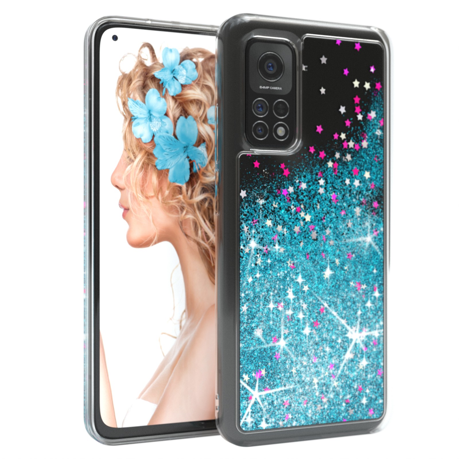 EAZY CASE Hülle kompatibel mit Für Xiaomi Mi 10T / 10T Pro Schutzhülle mit Flüssig-Glitzer, Handyhülle, Schutzhülle, Back Cover mit Glitter Flüssigkeit, TPU/Silikon, Transparent/Durchsichtig - Xiaomi Mi 10T / 10T Pro - Für Xiaomi Mi 10T - Durch den Treibsand Glitzer Effekt verändert sich deine Hülle stetig und ist immer wieder faszinierend anzusehen. Außerdem schützt das Case dein Handy effektiv gegen Kratzer. .
