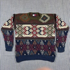 Tommy Hilfiger Herren Fair Isle Pullover Strickpullover 100% Wolle M blau blau