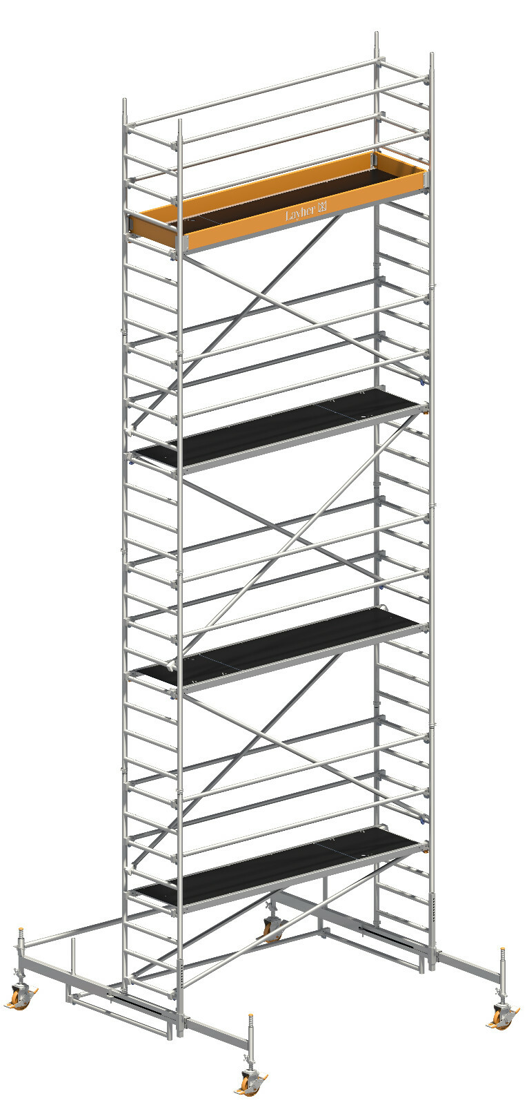 Das Original Layher Fahrgerüst in bewähr ter Qualität. Layher UniStandard Typ 1101 Arbeitshöhe 3,20m Gerüsthöhe 2,43m / Standhöhe (Bühnenhöhe) 1,20m Gewicht ca. 81,9kg. Layher UniStandard Typ 1102 Arbeitshöhe 4,35m Gerüsthöhe 3,58m / Standhöhe (Bühnenhöhe) 2,35m Gewicht ca. 161,0kg.
