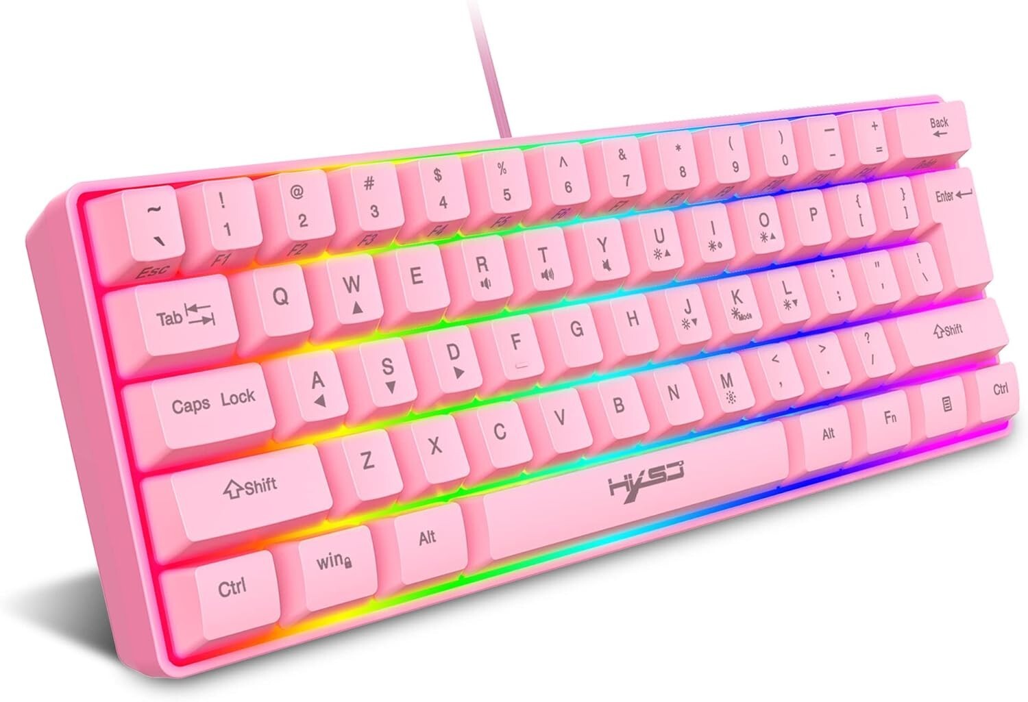 【Klassische 60% kompakte Mini-Tastatur】 Diese 60% Gaming-Tastatur hat eine perfekte Größe und ist gut für den Heim- und Bürogebrauch, UV-beschichtete Tastenkappen und ABS-Tastenkappen mit Injektionslaser-Carving-Design, der Buchstabe der Zeichen verblasst nie.