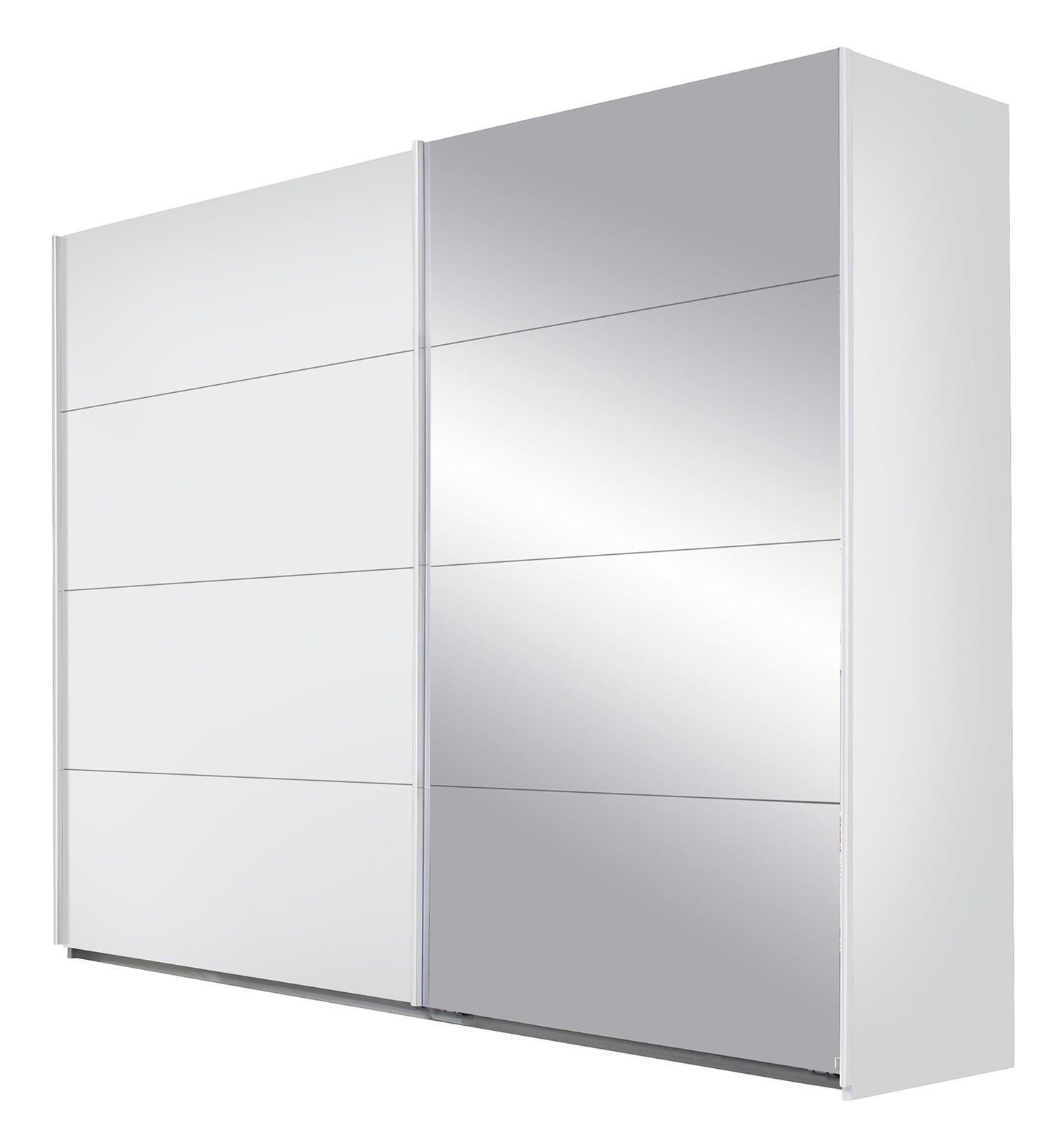 Der Schwebetürenschrank QUADRA der Marke Rauch ist in Alpinweiß ausgeführt und verfügt über eine Teilfront in Weiß Hochglanz. Er ist mit einer Schwebetür und einer Spiegeltür ausgestattet. Im Innenbereich befinden sich drei Kleiderstangen und drei Einlegeböden. Der Schrank wird in Deutschland gefertigt. Die Abmessungen betragen 271 cm in der Breite, 210 cm in der Höhe und 62 cm in der Tiefe. Dieser Kleiderschrank hat im Inneren die Farbe Grau. Zu einigen Kleiderschränken bieten wir Zubehör wie Schubkästeneinsätze, Wäscheeinteilungen, zusätzliche Fachböden und Türdämpfer an.