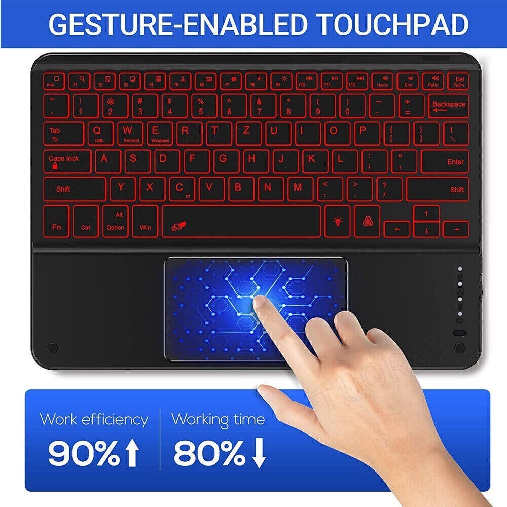 QWERTZ Bluetooth Tastatur Kabellos Maus Für iPad Android IOS Tablet LC Laptop. Die Reichweite beträgt bis zu 10m/33ft. RGB QWERTZ Tastatur mit Hintergrundbeleuchtung. Bluetooth-Maus und -Tastatur können gleichzeitig mit dem iPad verbunden werden.