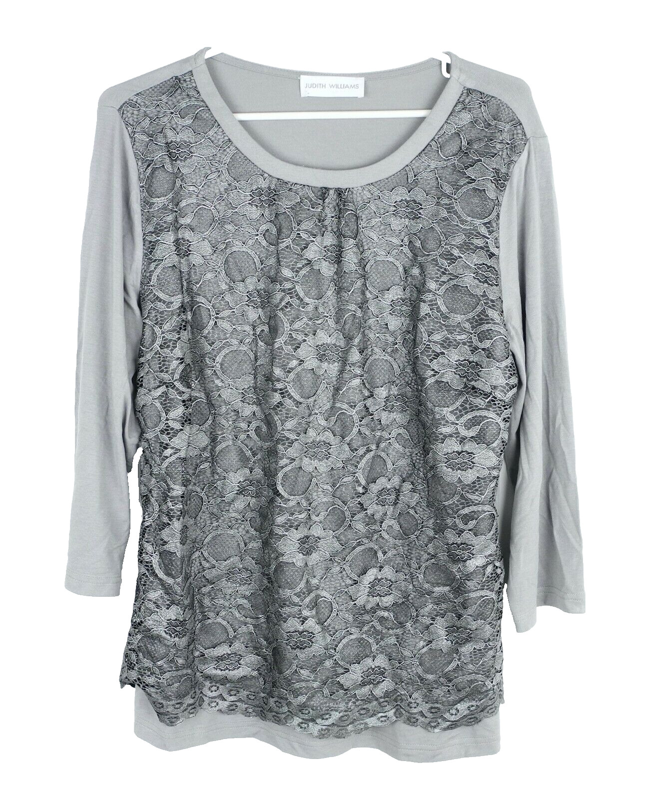 Judith Williams Langarmshirt Damen 38 Grau mit Spitze Oberteil 3/4-Ärmel