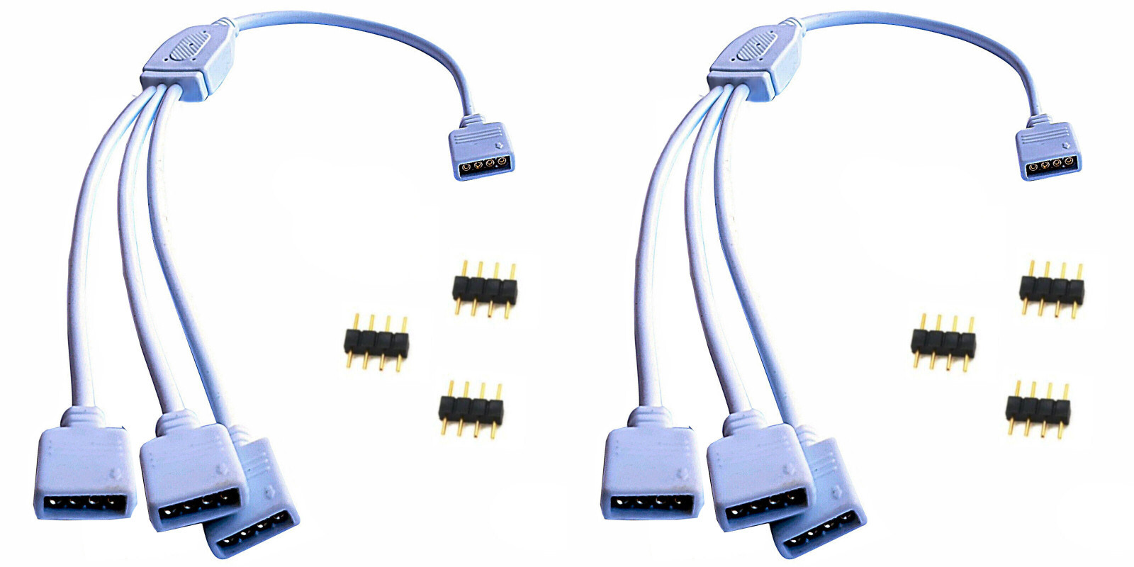 Wahlweise 1Stück oder 2Stück 3er Y Verbinder + je 4 Stück Nadel Steckerverbinder. Verbinder: RGB LED 3er Y Variante + 4x Nadel Stecker. Für Ihre LED Strip RGB Leiste Verbindungskabel Verlängerungskabel Verteiler mit Nadel Pin.