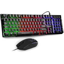 Die Rii Gaming Tastatur Maus RGB Beleuchtung QWERTZ Layout Regenbogen Farbe ist eine voll funktionsfähige Gaming- und Büro-Setup-Lösung mit RGB-Beleuchtung. Regenbogen-Beleuchtung für eine ansprechende Atmosphäre.