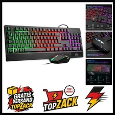 Rii Gaming Tastatur Maus RGB Beleuchtung QWERTZ Layout Regenbogen Far
