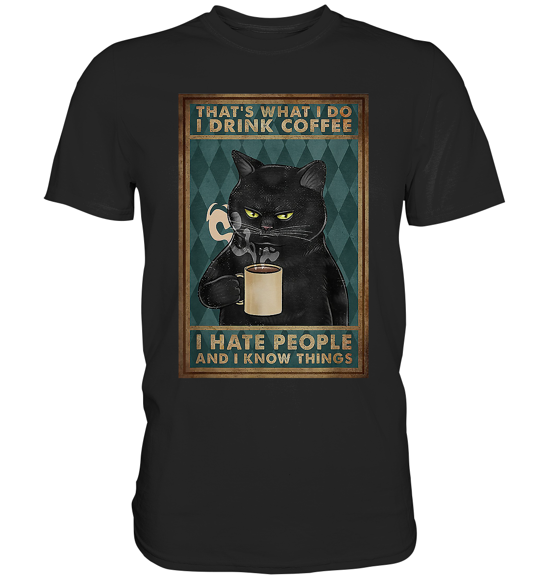 That's What I Do I Drink Coffee I Hate People And I Know T-Shirt | Katze Cat - Premium Shirt That's What I Do I Drink Coffee I Hate People And I Know Things Bär und Kaffee Liebhaber Motiv. Lustige Geschenkidee für alle die Morgens am liebsten nicht angesprochen werden möchten.