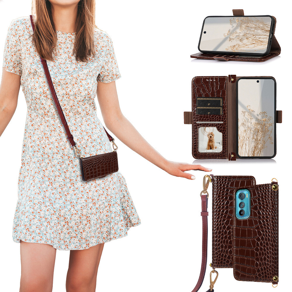 Luxus Krokodil Bilng Strass Echtleder Umhängetasche Klapphülle Case für motorola