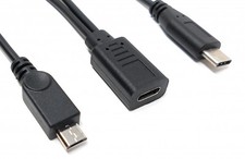 USB 3.1 Y Kabel 25 cm Typ C Buchse zu 2x 2.0 Micro B Stecker Adapter in Schwarz
