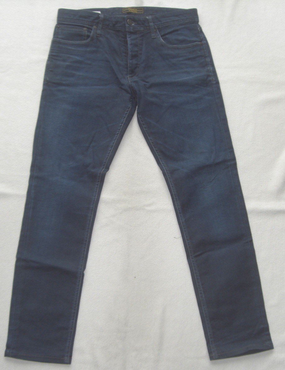 Weite der Hosenbeinenden: ca. 17 cm. Weite der Oberschenkel in Schritthöhe: ca. 29 cm. Leider wurde alle Waschetiketten entfernt, die Größe liegt bei W31 sowie klaren L30. Material: Vermutlich 97% Baumwolle, 3% Elasthan ( ich habe/hatte das exakte Modell mit Waschetiketten noch einmal).