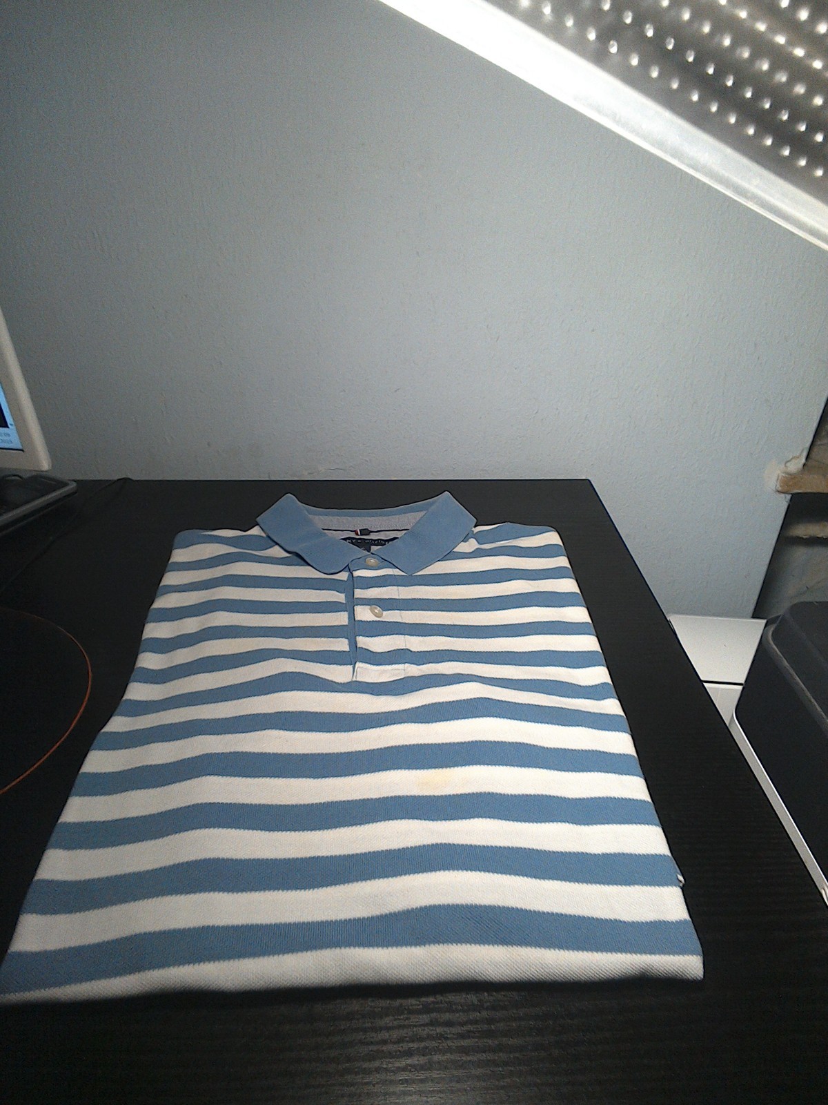 Tommy Hilfiger Polohemd, Poloshirt blau/weiß Gr. L/G, Custom Fit