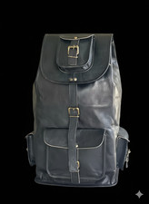 20" Laptop Rucksack Vintage Reise Echte Schwarze Alfa Leder Ziegen Tasche Gym