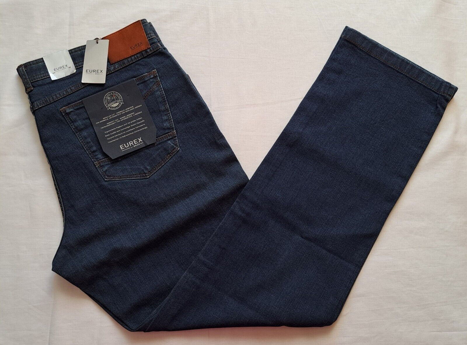 EUREX by BRAX. 2 Seitliche Taschen mit Nieten, 1 Münztasche. der eindeutigen Identifikation der Ware und kennzeichnen Qualität ! Gesamtlänge außen: 108 cm ( ohne Bund), 112 cm (mit Bund). Verschluss: YKK Marken Reißverschluss und 1 Knopf.