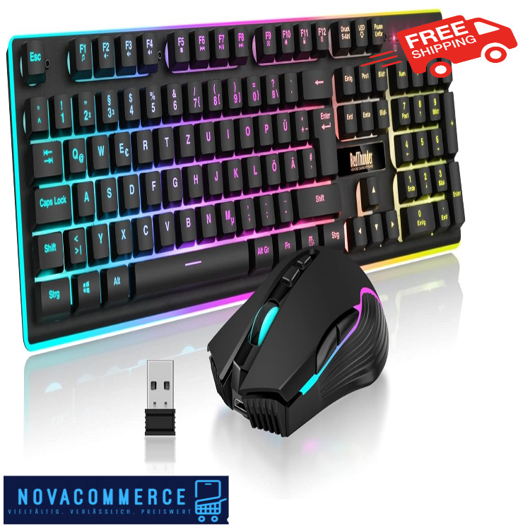 RedThunder K10 Kabelloses Gaming Tastatur und Maus Set, QWERTZ DE Layout,