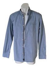 Modernes Herrenhemd vonTom Tailor in attraktivem Jeansblau mit feiner Streifenstruktur. Design:fein gestreift. Material:100 % Baumwolle. Größe laut Etikett:L. Passform:Slim / körpernah. Die Farbe entspricht dem Hauptfoto.