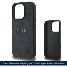 Guess Handy Hülle MagSafe Case für iPhone 16 Pro Max PU-Leder Backcover Black