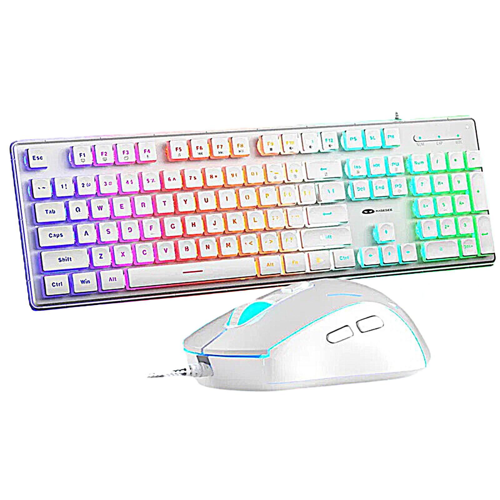 Gaming Tastatur und Maus, weiß, RGB-Beleuchtung, Ergonomisch, USB, Hochpräzise
