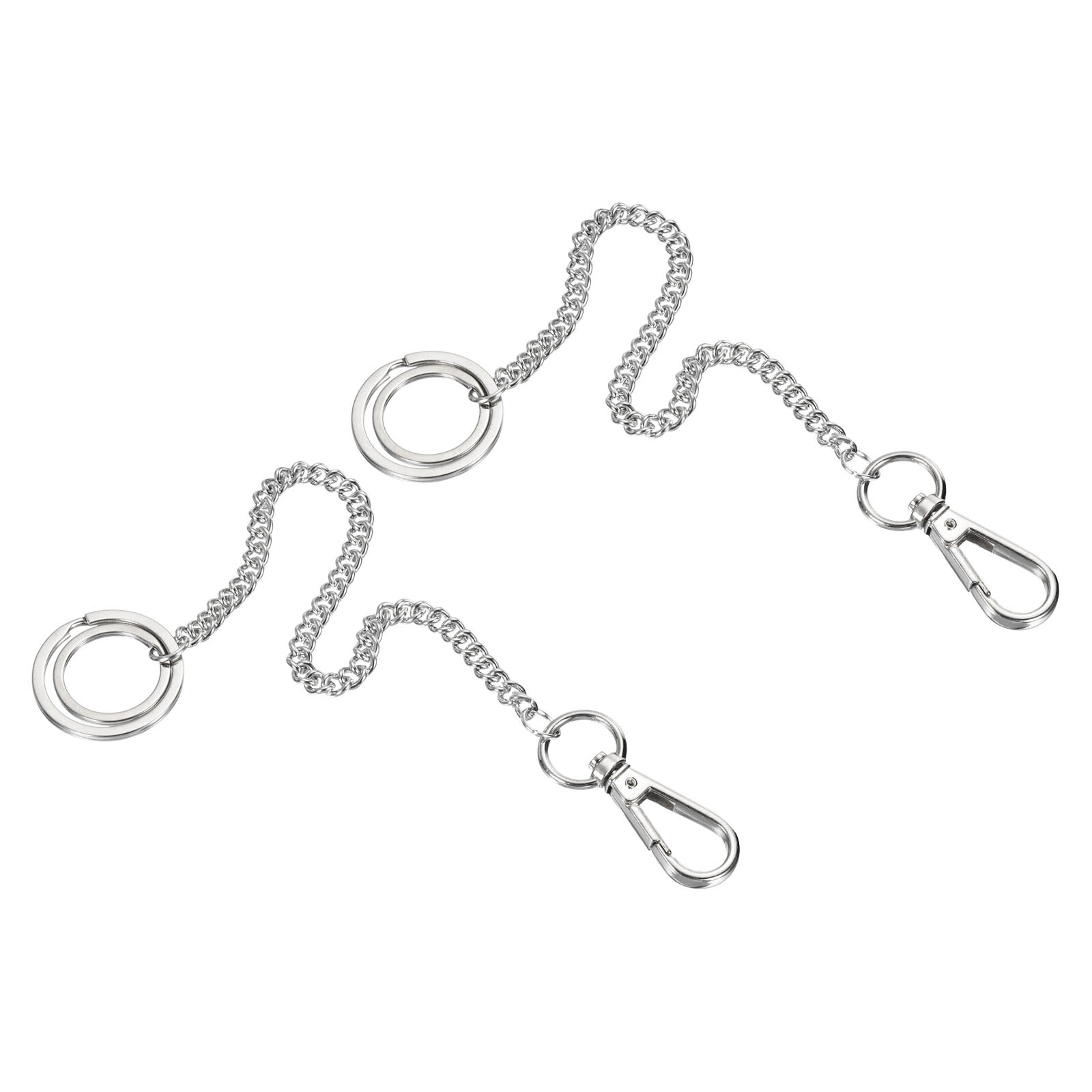 Der Schlüsselanhänger wird hauptsächlich zum Aufhängen von Schlüsseln, Brieftaschen, Taschenlampen und Taschenlampen an Handtaschen, Rucksäcken, Jeansgürteln und Hosentaschen verwendet.SpezifikationenFarbe: SilberMaterial: Vernickeltes Metall Verschlusslänge: 48 mm / 1,89 ZollSchlüsselanhänger Durchmesser: 25 mm / 0,98 Zoll, 32 mm / 1,26 ZollKettenbreite: 5,5 mm / 0,22 ZollKettenlänge: 200 mm / 7,87 ZollPackungsinhalt: 2 x SchlüsselhalterVorteil Aus vernickeltem Metall, leicht und solide, glatt und glänzend und nicht leicht zu verblassen. Clipverschluss, mit einem kleinen und einem großen Schlüsselbund pro Kette zum besseren Organisieren und Sortieren.AnleitungDer Karabinerverschluss und die geteilten Schlüsselringe an den Enden lassen sich leicht öffnen und schließen, Sie können Gegenstände bequem anbringen und überall hin mitnehmen.