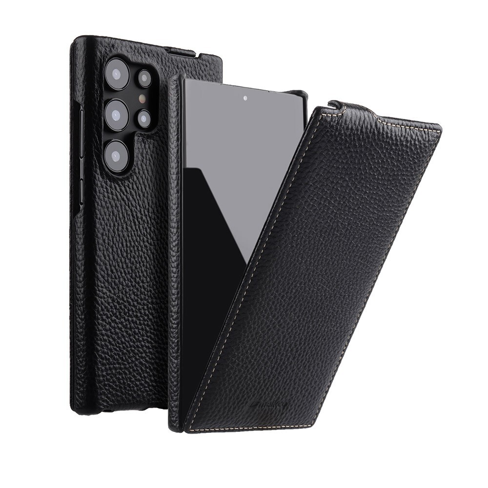 Vertikal Echt Leder Klapphülle Flip Case Schutz Tasche für Samsung S24/S25/Ultla