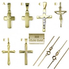Anhänger Halsschmuck Kreuz 333 Gold gelb glanz matt diamantiert Damen 8 Karat V