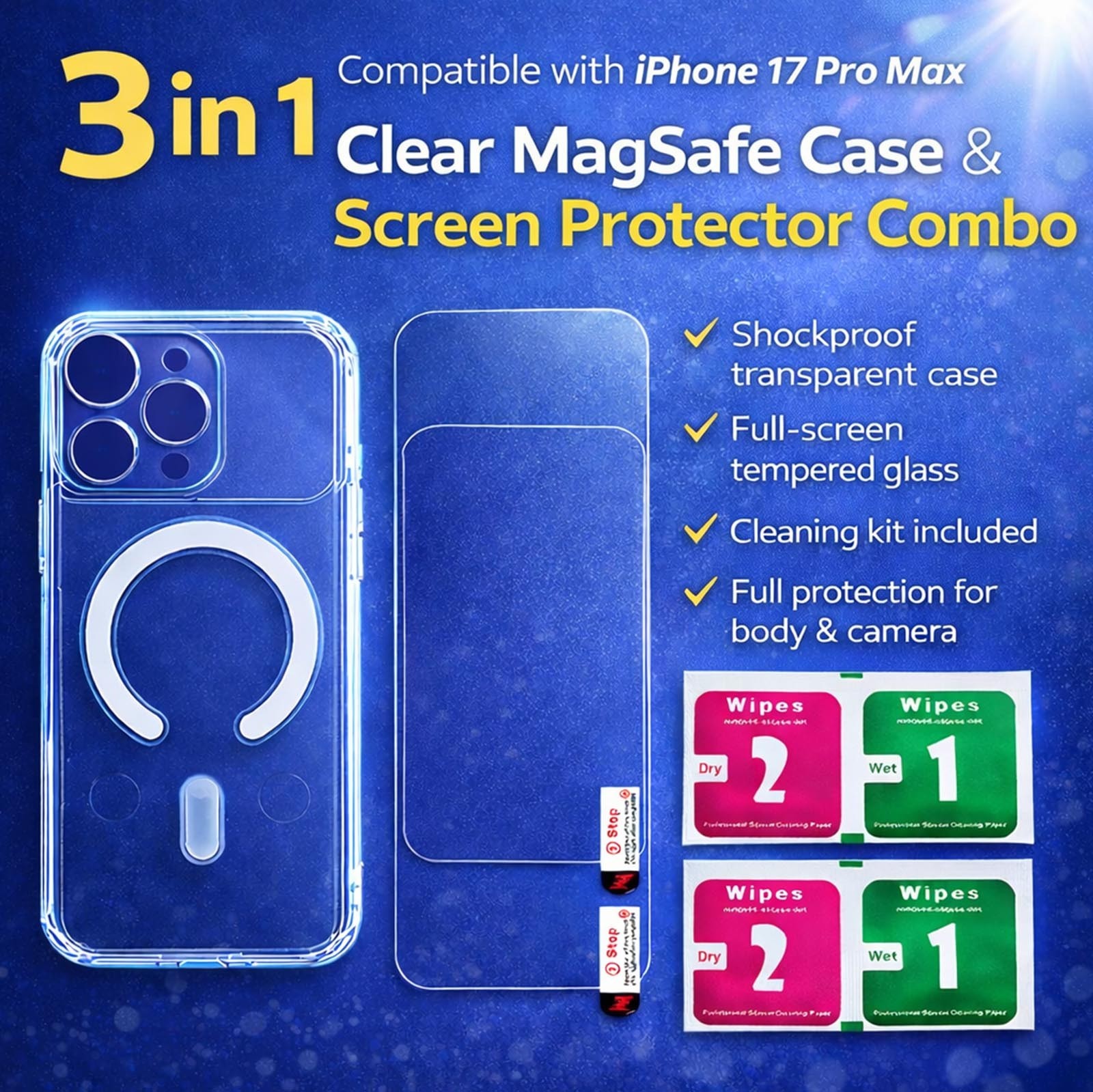 Die MagSafe-kompatible Hülle schützt Ihr iPhone zuverlässig und stilvoll. Das 9H-Displayschutzglas bewahrt den Bildschirm Ihres iPhones effektiv vor Kratzern und Abnutzung. Das Set sorgt für umfassenden Schutz und bewahrt Ihr iPhone rundum vor Schäden.