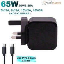 Compatible: 18W/ 29W/ 30W/ 45W/ 61W/ 65W (0-65W) (Auto Adjustable). Pin Type/Size : USB Type-C / UK Wall Plug. Colour: White. Condition: New. Output: 5V/3A, 9V/3A, 15V/3A, 20V/3.25A. AJ PARTS UK LTD.