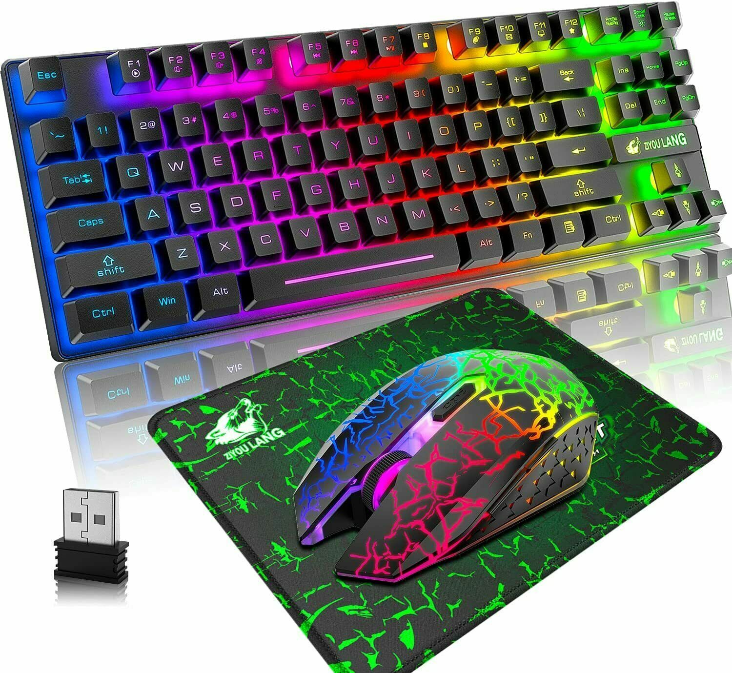T87 2,4G Kabellose Gaming Tastatur und Maus Set RGB Chroma LED 87 Tasten PC