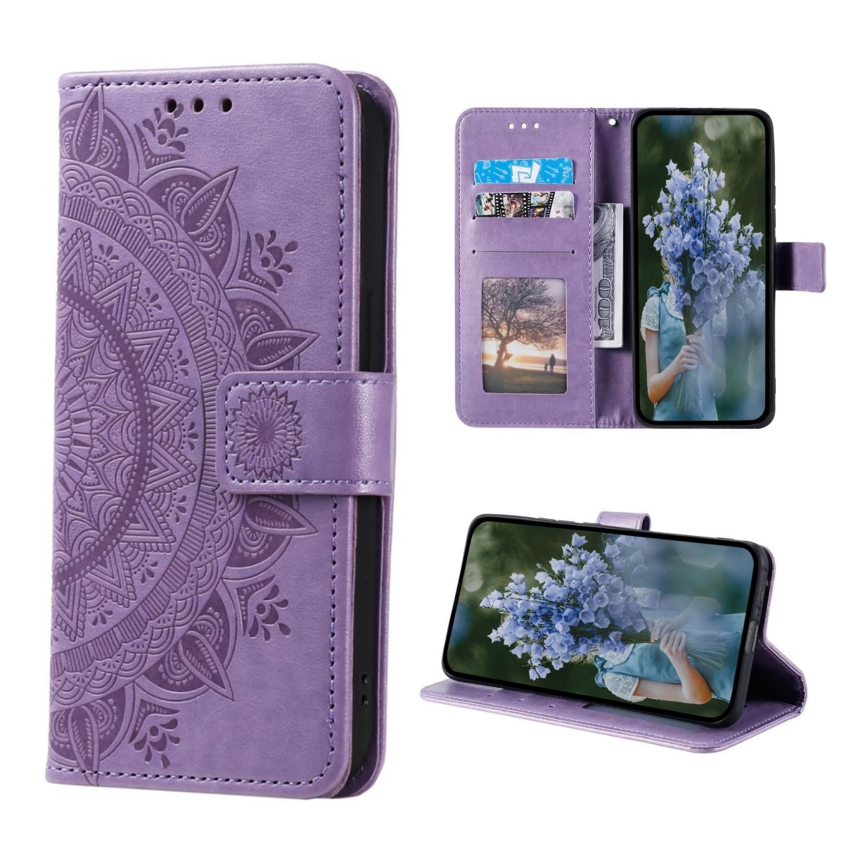 CoverKingz Handyhülle für Samsung Galaxy S23 - Handytasche mit Kartenfach Galaxy S23 Cover - Handy Hülle klappbar Motiv Mandala - Handy Tasche in Leder Optik: Die Klapphülle mit Mandala Muster ist aus widerstandsfähigem Kunstleder gefertigt. Das Flip Case schützt dein Smartphone rundum vor ramponierten Ecken und Kratzern.