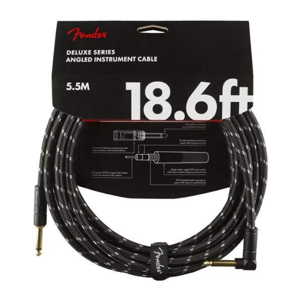 FENDER Deluxe Instrument Cable Angled 5,5m Black Tweed ❘ Kabel ❘ Gitarrenkabel