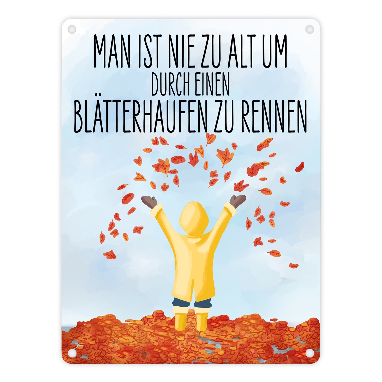 Der Spruch dazu lautet: Man ist nie zu alt um durch einen Blätterhaufen zu rennen. Du möchtest einer Person, die den Herbst liebt eine kleine Freude machen?. Dann ist dieses Schild perfekt für dich geeignet.