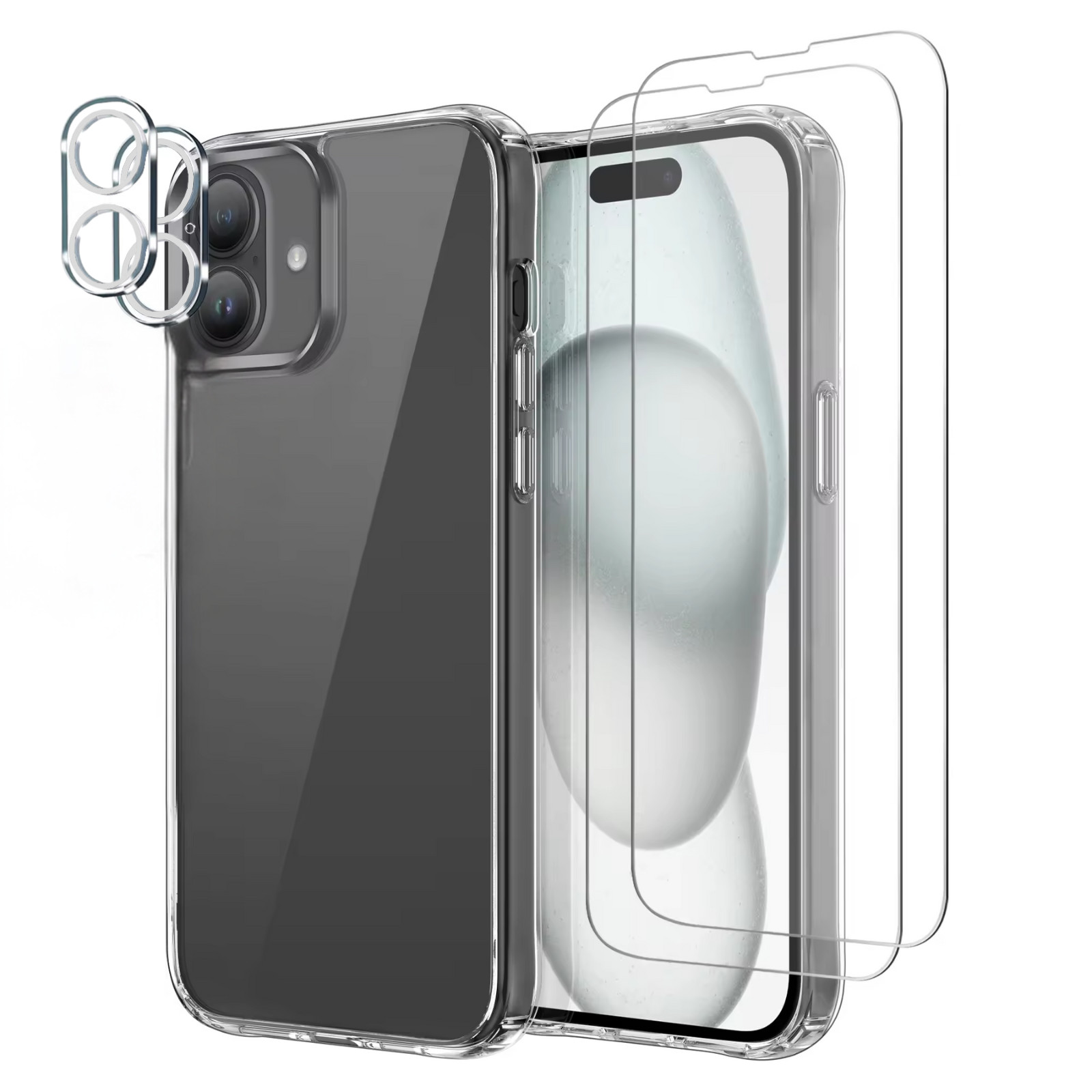 5in1 Komplettschutz-Set für iPhone 16, 16 Plus, 16 Pro und 16 Pro Max. Dieses Set bietet alles, was Sie benötigen, um Ihr Gerät vor Kratzern, Stößen und alltäglichen Abnutzungen zu bewahren. Der präzise Zuschnitt sorgt dafür, dass die Bildqualität nicht beeinträchtigt wird.