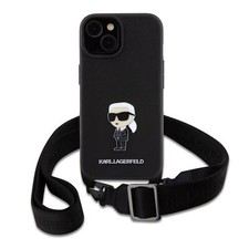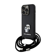 Karl Lagerfeld Crossbody Saffiano Metal Pin Karl & Choupette Case, Schwarz - iPh