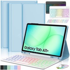 1 Stk.USB Ladekabel. Tastatur mit 7 Farben und Hintergrundbeleuchtung zum Tippen in dunkler Nacht, die helle Farbe und Helligkeit können umgeschaltet werden. Hülle mit Touchpad Beleuchtet Tastatur Für Samsung Galaxy Tab S10 FE S9 FE S8 S7.