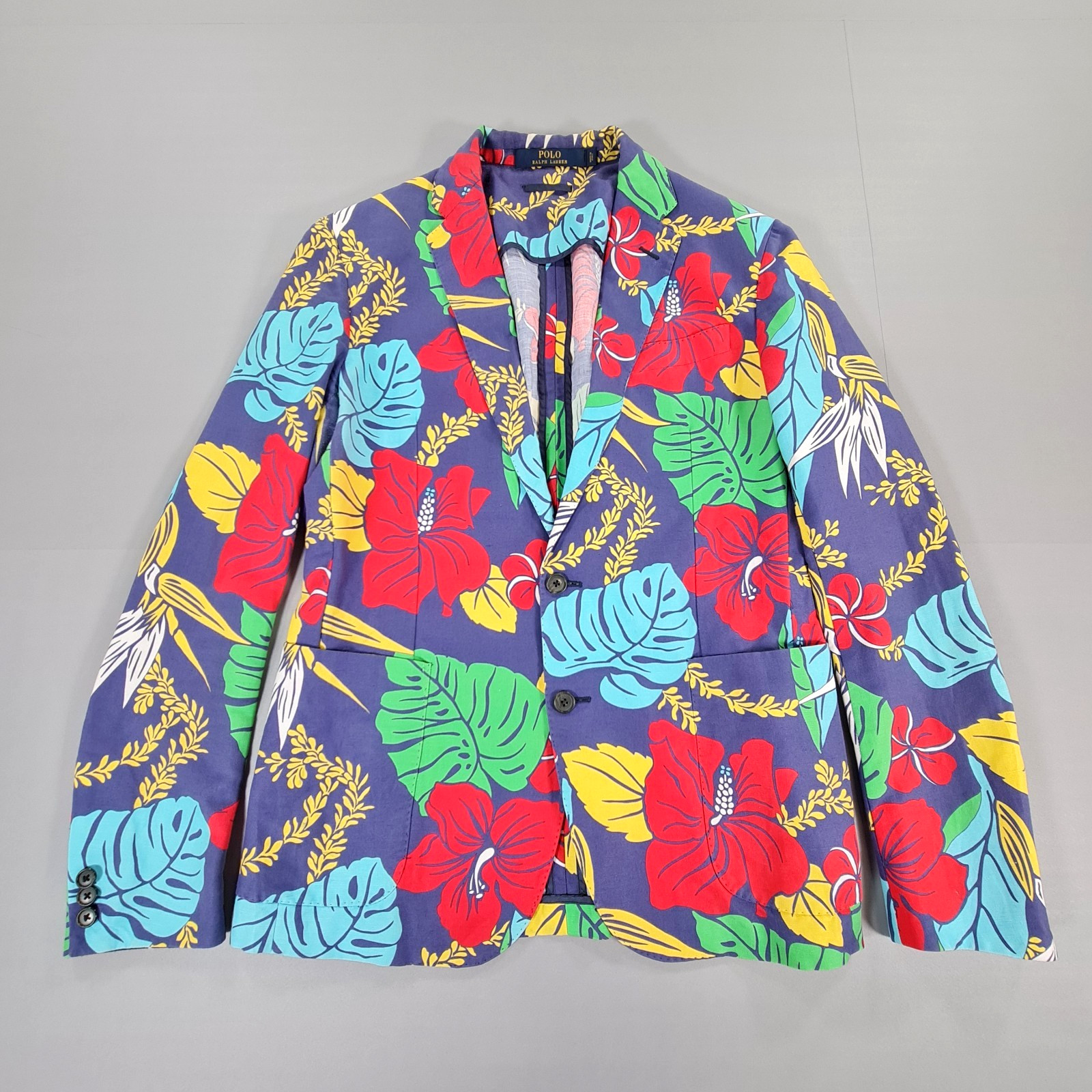 Polo Ralph Lauren Herren Blazer Blau 40 R Leinenmischung Blumen Sommer Urlaub Chore