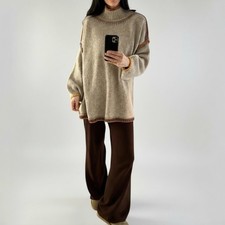Weiter dicker Strick Pullover, oversized, in Flieder. Aus 50% Baumwolle, 50% Polyamid. Größe 40. Es befinden sich beige Flecken und Kragenschmutz auf dem Pullover.