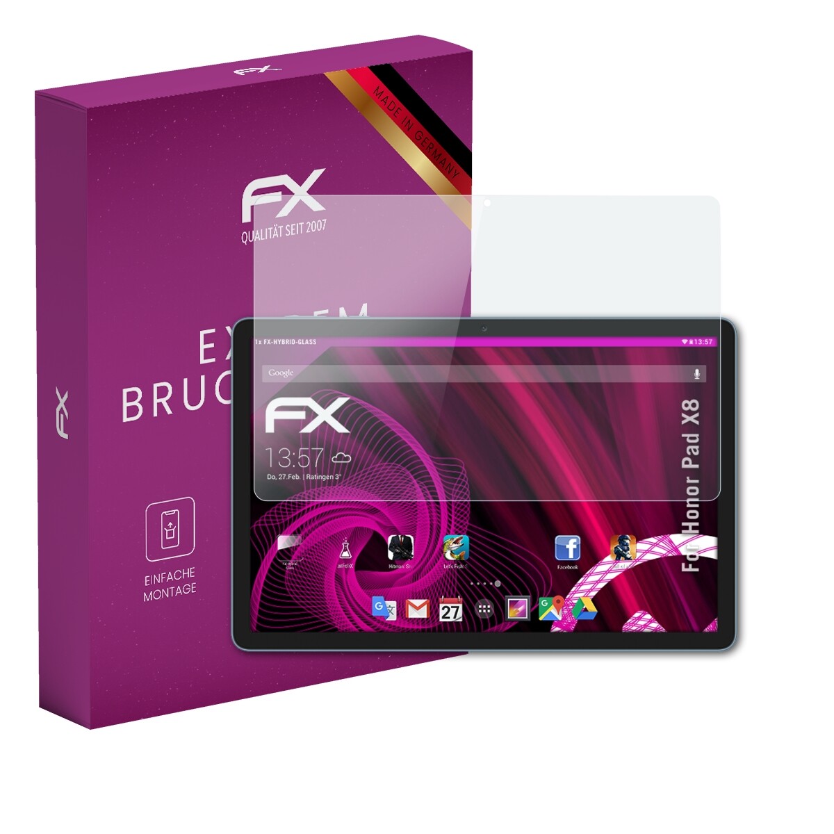 Ultradünn und superhart - 9H - besser als Echtglas: atFoliX FX-Hybrid-Glass Glasfolie für Honor Pad X8 - Made in Germany! Verkauf und Versand durch @FoliX - Original und direkt vom Hersteller! Montage Zubehör inklusive: Reinigungstuch, Montagewerkzeug (Rakel), Link zur mehrsprachigen, bebilderten Montageanleitung (inkl. Montagevideo).