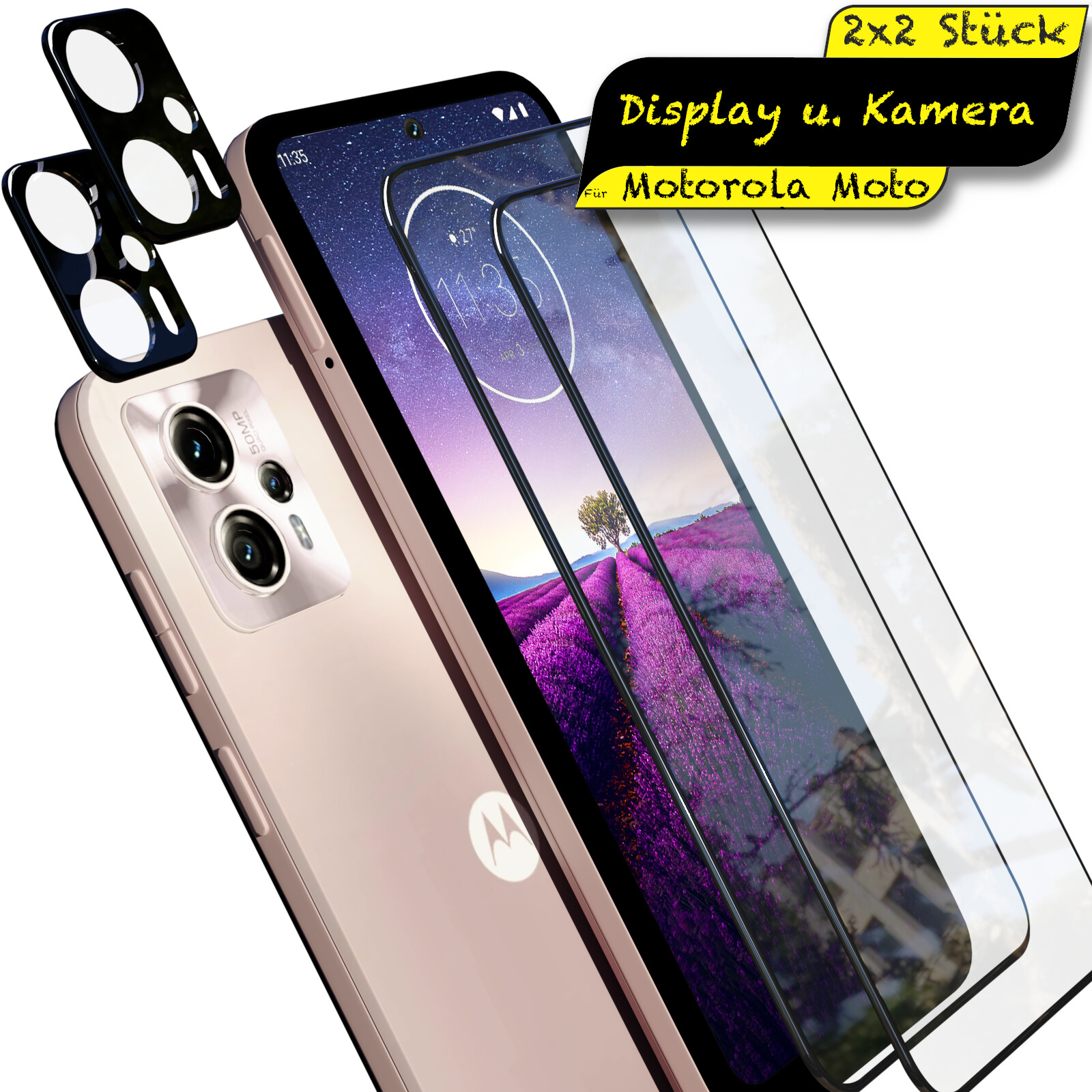 Schützen Sie Ihr Motorola Moto Smartphone mit dem EGEDI® 4in1 Display und Linsen Schutz Set, bestehend aus zwei ultraklaren Display-Schutzgläsern und zwei robusten Kameraschutzgläsern. Die 9H Echtglasfolien bieten maximalen Schutz vor Kratzern und Stößen, während der Kameraschutz ihre Objektive kratzerfrei für dauerhaft brillante Bilder hält. Mit nur 0,3mm Dicke bleibt Ihr Smartphone schlank und ästhetisch. Die Schutzgläser sind blasenfrei installierbar, rückstandslos entfernbar und 100% hüllenfreundlich – bitte beachten Sie, dass bei Verwendung einer Hülle ein Ausschnitt für die Kamera vorhanden sein muss. Auswahl für alle Motorola Moto Modelle – bitte besuchen Sie unseren eBay-Shop für viele andere Modelle, Hüllen und Kameraschutzgläser, bei gesammelter Bestellung mit bis zu 25% Rabatt!.