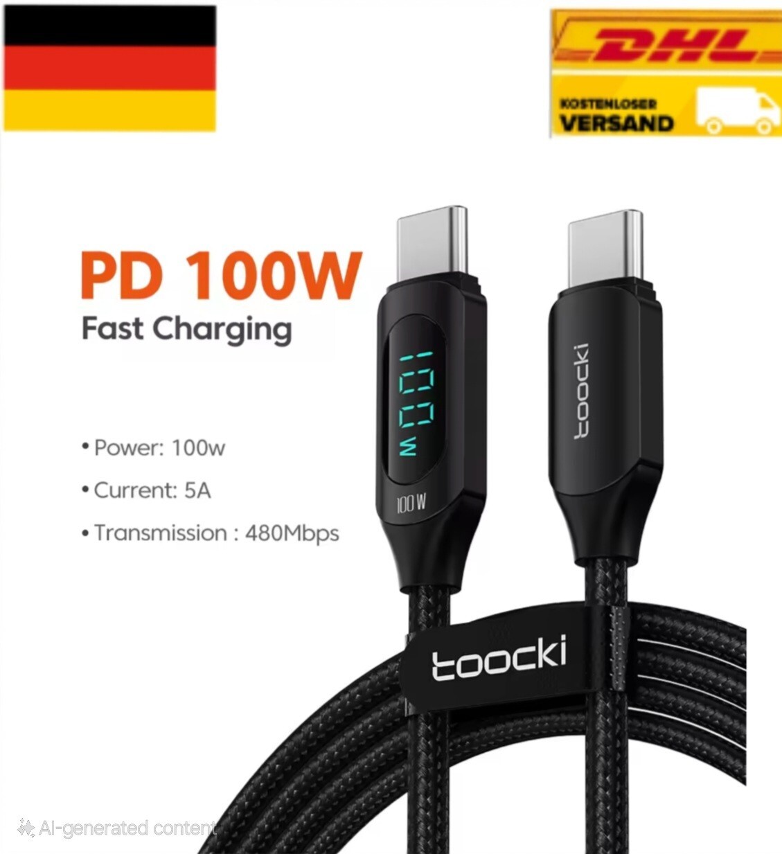 Computer ausrüstung und Lade ausrüstung unterstützung sind erforderlich, um 100w Schnell ladung zu erfüllen. Das Kabel ist in Schwarz gehalten und hat eine robuste Design/Oberfläche. Es ist das perfekte Kabel für den schnellen Ladegegenwohnheitsbereich und für den Einsatz in Büros oder Familien.