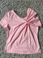 T-Shirt Damen Gr. L kurzarm weiß V-Ausschnitt mit Knöpfen