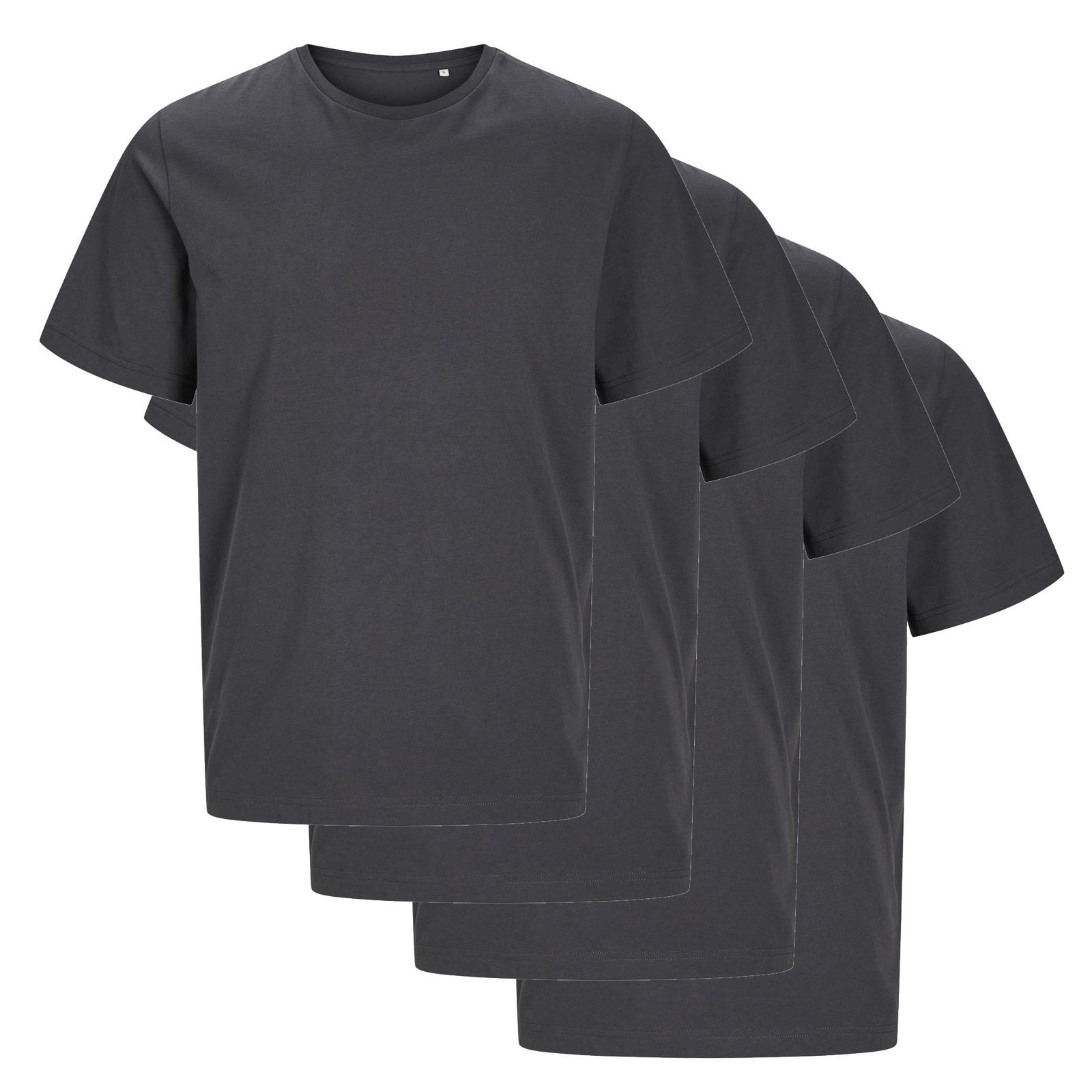 4er Set Jack & Jones T-Shirt ohne Motiv, Bio-Baumwolle 180g/m², Seitennähte, hochwertiger Single-Jersey-Stoff, OekoTex Standard 100.