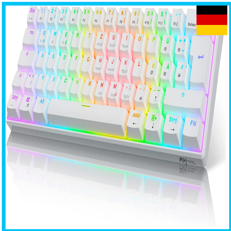 Sie ist ideal für Spieler, die eine leistungsstarke und stylische Tastatur suchen. Deutsches QWERTZ-Layout mit 61 Tasten. RGB-Beleuchtung für ein ansprechendes Gaming-Erlebnis. 2,4-GHz-Verbindung, Bluetooth und USB.