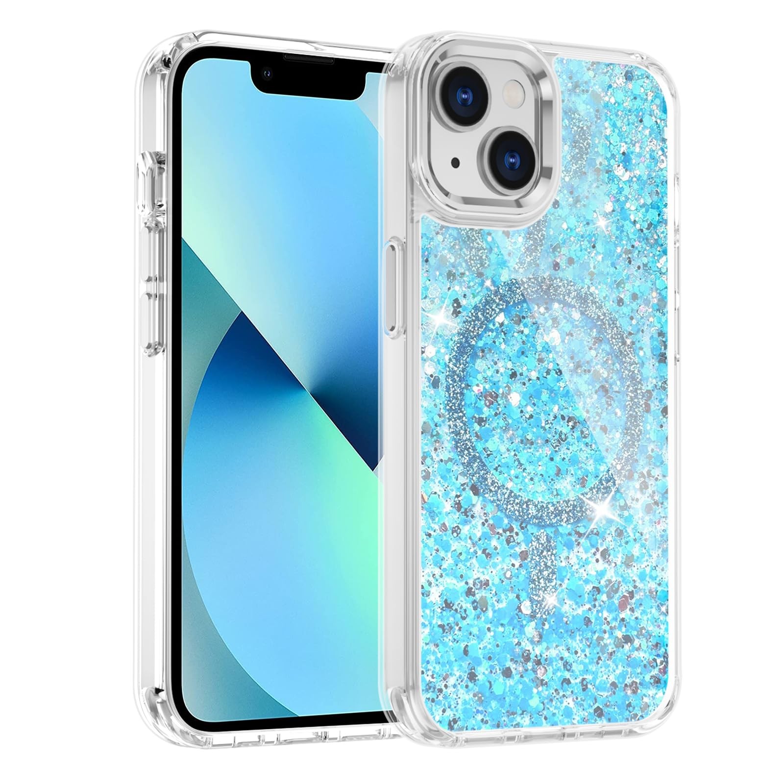 Für iPhone 13 Hülle Glitzer Magnetische kompatibel mit MagSafe, Schutzhülle für Frauen und Mädchen Glänzend Pailletten Silikon Handyhülle Robustes Stoßfest Kratzfest Case, Blau. [Glitzer-Bling-Design]: Die Schutzhülle verwendet das Leim-Tropf-Verfahren, um eine Vielzahl verschiedener Pailletten auf die Rückseite der Handyhülle zu wickeln.