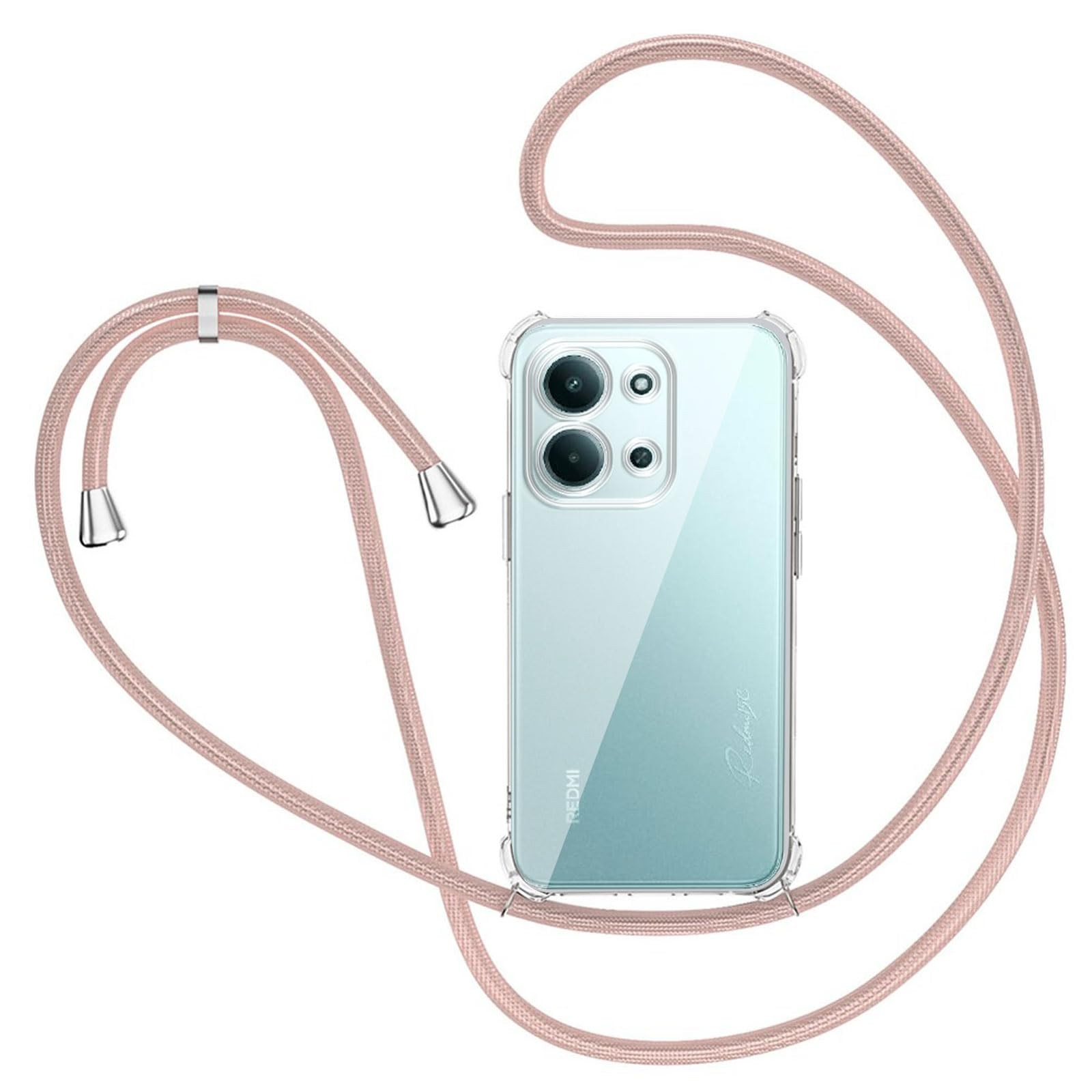 Handykette Hülle für Xiaomi Redmi 15C mit Band, Transparent Silikon Handyhülle für Xiaomi Redmi 15C 5G / 4G mit Kette Stossfest Schutzhülle - Schnur mit Case zum Umhängen in Roségold. Xiaomi Redmi 15C Hülle mit Handykette.