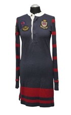 Ralph Lauren Shirtkleid Rugby / Größe S / dunkelblau bordeaux gestreift / Rugby-Kleid mit langem Ärmel und Knopfleiste / Jersey aus 100% Baumwolle / Zustand: getragen – gut (weitere Informationen finden Sie in der Artikelbeschreibung +++ BITTE BEACHTEN SIE DIE MAßANGABEN IN DER ARTIKELBESCHREIBUNG).