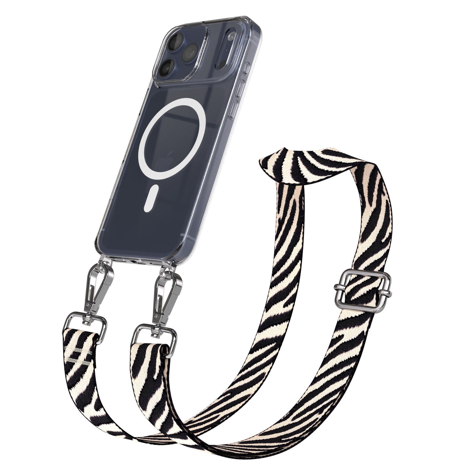 MagSafe Handyhülle mit Band für Apple iPhone 17 Pro Max Case Kette Zebra -Silber