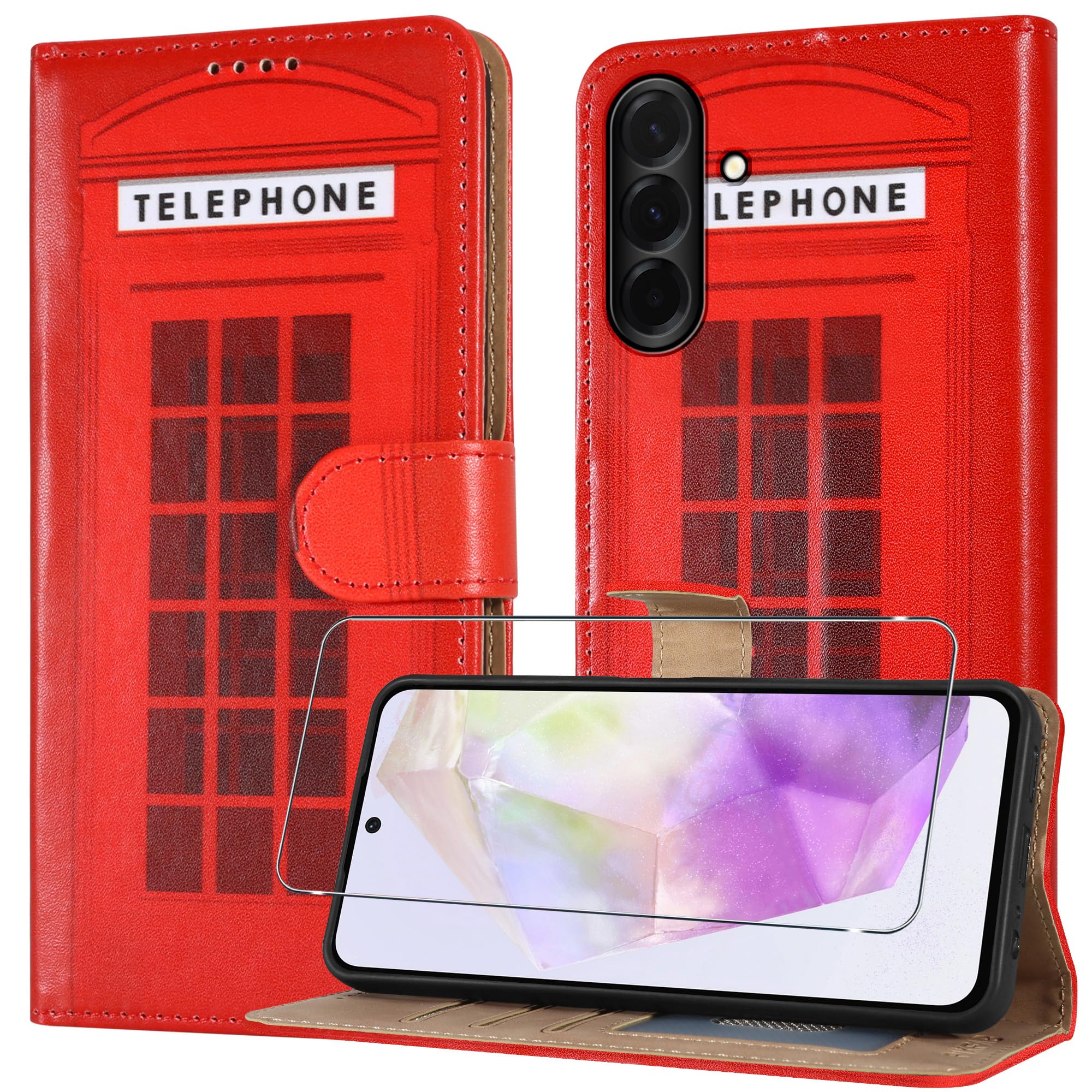 Samsung A37 5G Leder Wallet Case Mit RFID, Flip Hülle + Displayschutz