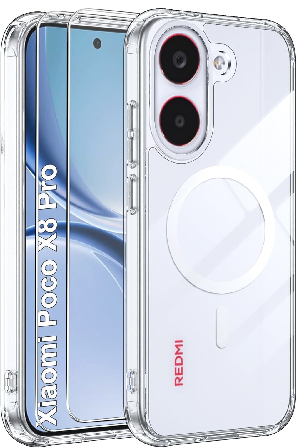 Klar Magnetisch Hülle + Displayglas für Xiaomi Poco X8 Pro 5G Case Kameraschutz