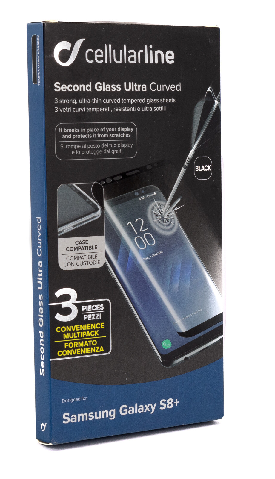 Cellularline "Second Glass Ultra Curved" Hart Glas Galaxy S8 +. 3x Ultradünnes und maximal schützendes Glas zum Schutz des Displays Ihres Samsung Galaxy S8+. Gleiche Helligkeit und gleiches Oberflächengefühl wie das Original - Display.