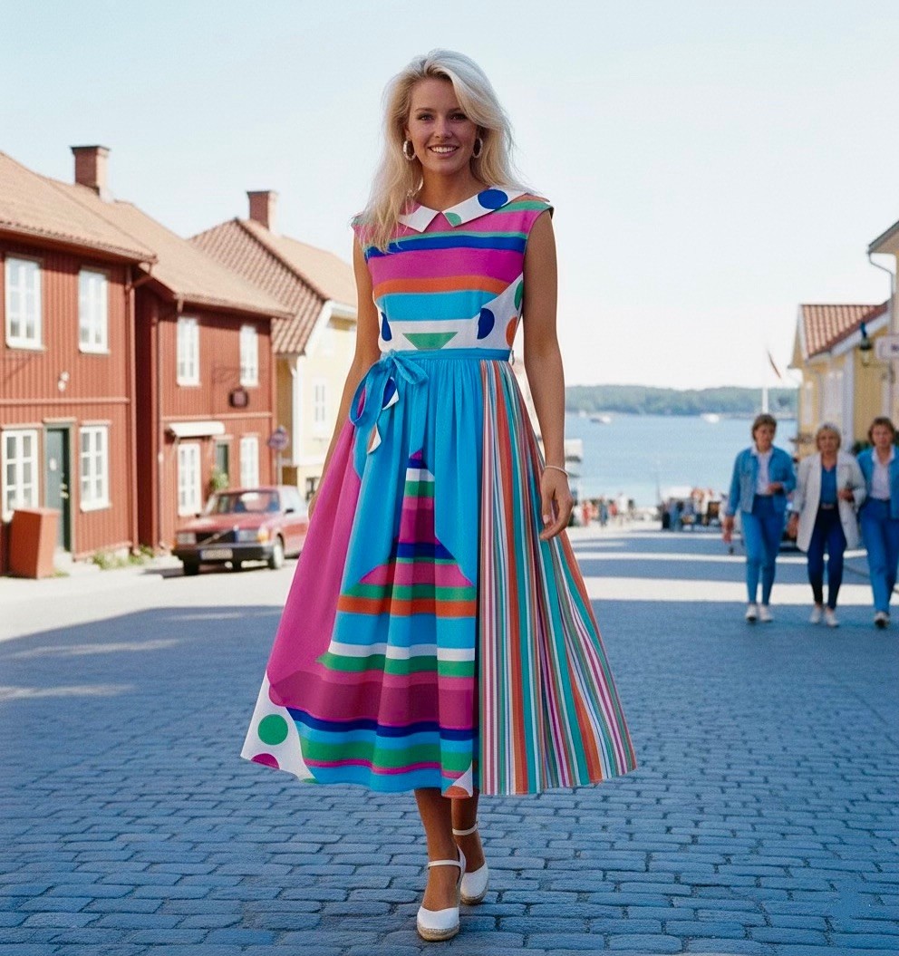 DAMEN/LADIES 80’S VINTAGE, 50’S STYLE ROCKABILLY COLOUR POP SPOTTED KLEID